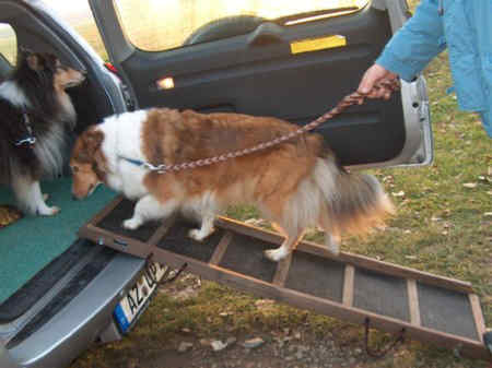 Im Alter sollte ein Collie nicht mehr ins Auto springen oder raus springen.