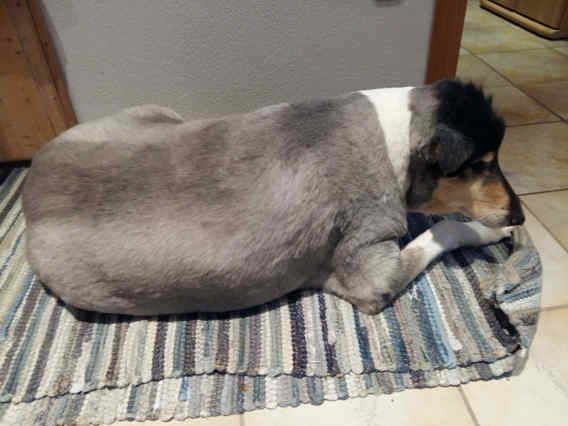 Pflege, was aus dem dicken Collie vom 45 kg geworden ist.