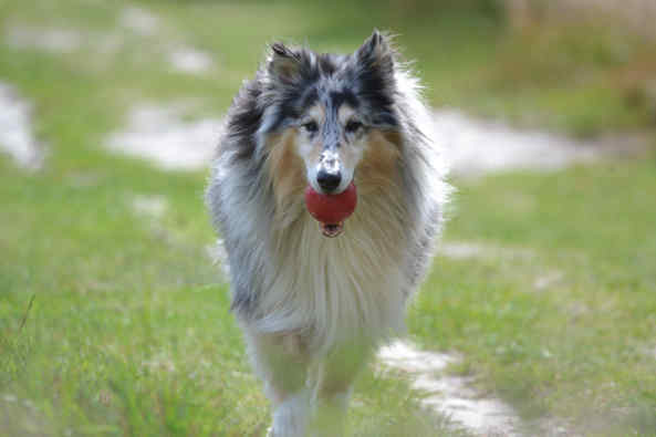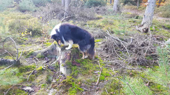 Wo ist der Ball, jetzt muss Herrchen den mühsam zusammen gefegten Laubhaufen wieder aus einander puhlen ;-)))!