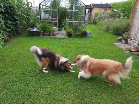 nicht für andere Hunde interessiert, aber jetzt fordert sie Vitus zum